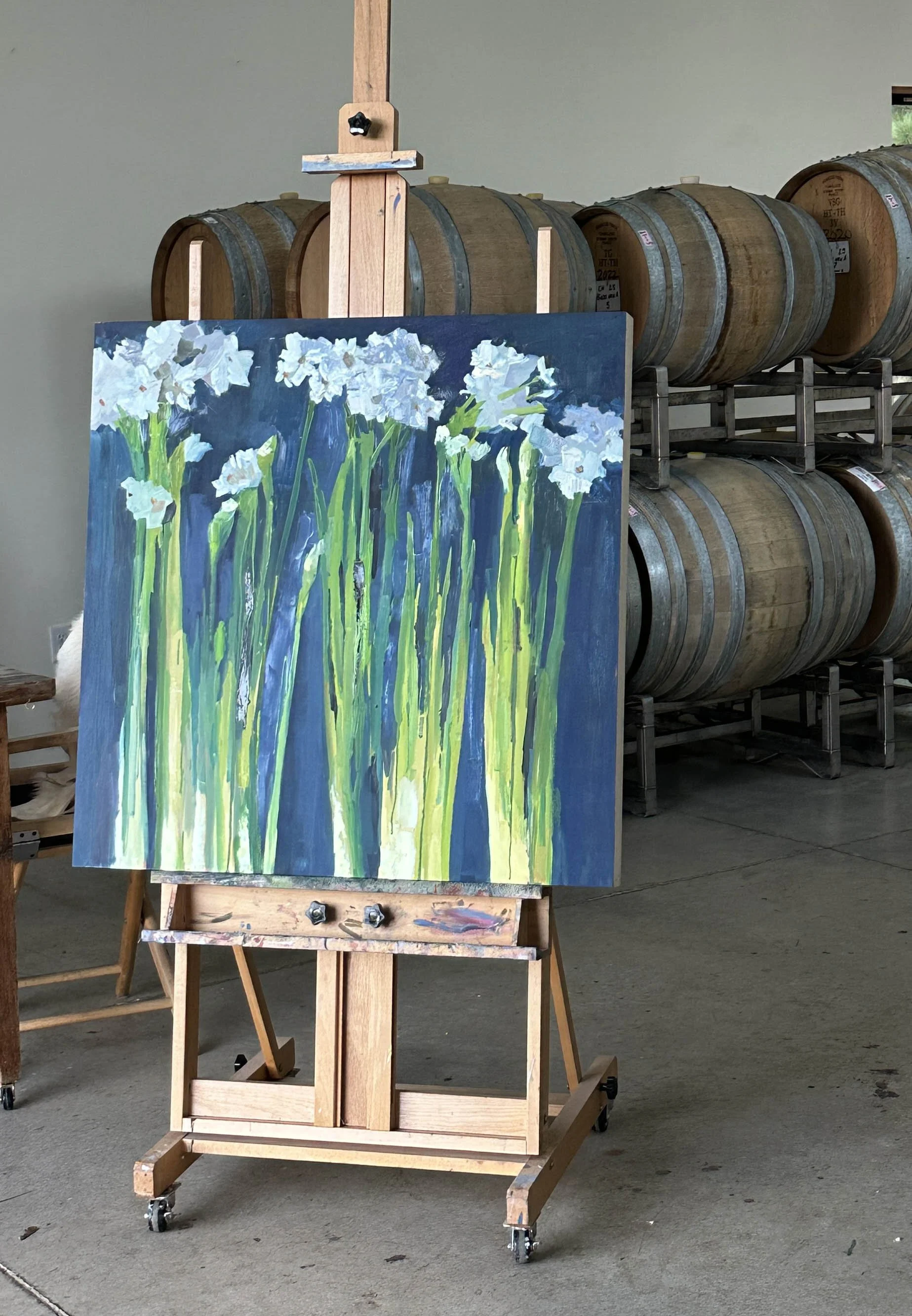 Back to the art! Clare started in January of last year painting clothes pins on a regular basis - a piece by piece assembly of a greater work, driven by color and confined by size and subject, and also the constraints of life. She managed to produce 164 unique clothes pins that were arranged en masse in a ‘mosaic’ this past fall. I thought it was a super fun project to watch happen and to admire in the finale. Most of them are sold, but there is still a few available - please reach out to her or Joe if you're interested! She is moving forward and onto new seasonal subjects with paper whites the latest.
