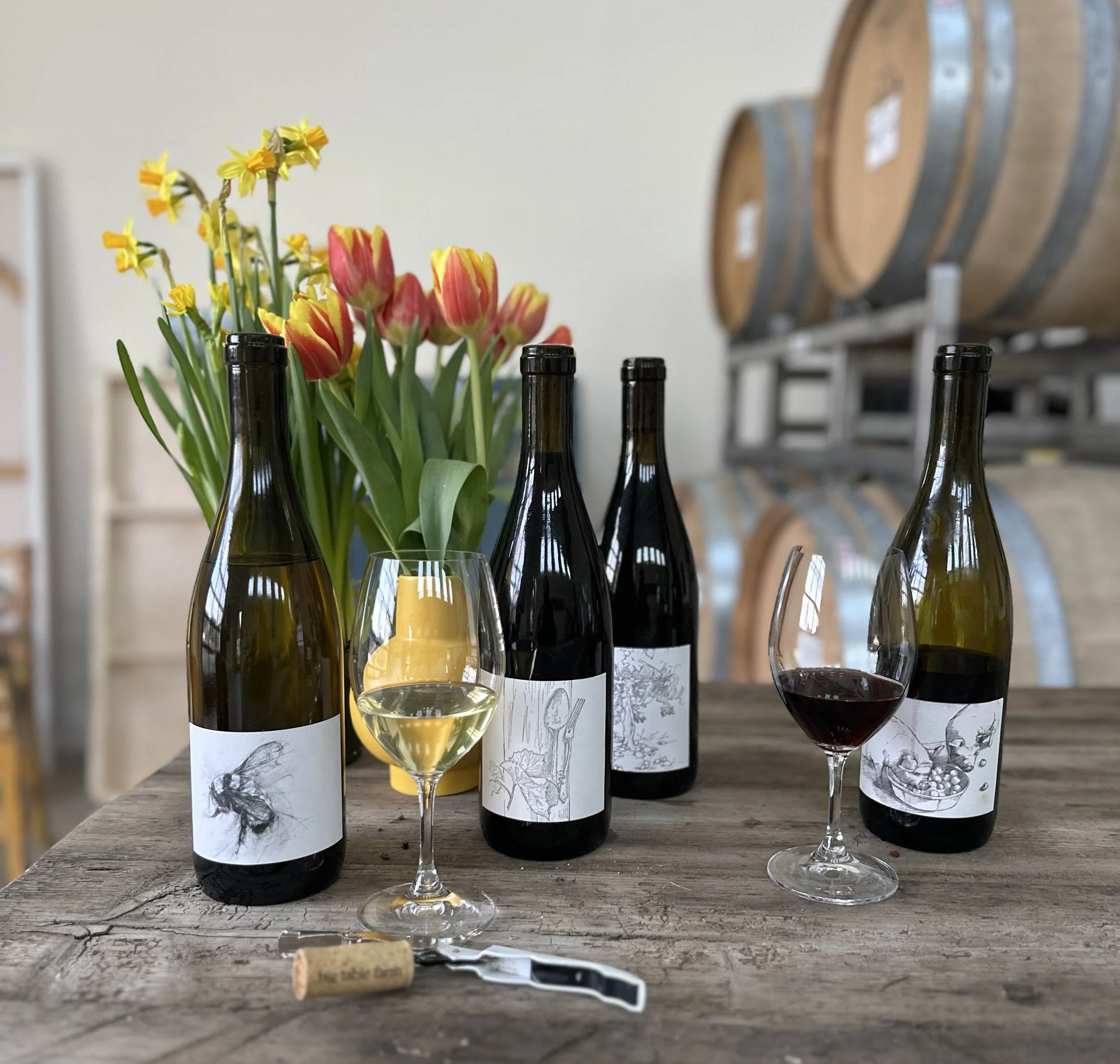 2024 Willamette Valley Pinot Noir - much like the wild bee this one is also a true Willamette Valley blend, with five of the seven Chardonnay sites we work with also providing pinot noir plus a few more that solely provide Pinot, so fruit from many parts of the valley, each of the vineyards and their owners contribute the pieces and personalities that make up the whole of this wine. I do make the selections for the single vineyard wines and Earth first so this wine is made of what is left - but it always takes on a life of its’ own and like the wild bee it is our largest bottling of pinot noir at about 2000 cases. It is only at the end of elevage that I make the barrel selections so all are treated with equal diligence. We built our winery here on the farm in 2014 with only minimal changes in wine making since then - we graduated from a small basket press to a slightly larger one a few years ago - otherwise same same - native whole cluster ferments, unfined and unfiltered – and if you have enjoyed past vintages, then surely this one will fit the bill too! Still the ‘pig’ wine, Thelma and Louise on the label, and of course, shipping included with an order of six or….more?