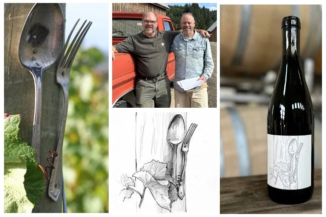 2024 Pelos Sandberg Vineyard pinot noir - great friend and pretty good grape grower 😉 Don Sandberg likes to joke with some seriousness about his site being ‘grand cru’. With this as his mantra he puts heart and soul into his vineyard and the grapes he produces each vintage. We have similar visions - make the best we can, make the best that is possible - we compare notes often and the picking window for his wines under the Iota brand and ours are often in the same day, or next day, depending on logistics. His dedication to quality is inspiring and helps me produce the best that I can each year - this 2024 is no different! Cutlery on the end posts (and the label) mark the blocks of this vineyard that we have been working with since 2010. Thank you Don and cheers! I hope you enjoy this wine as much as we do! For sure - free shipping on six of this one too, but I'm pretty sure you want a case!